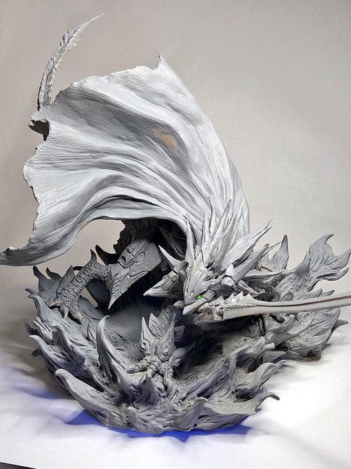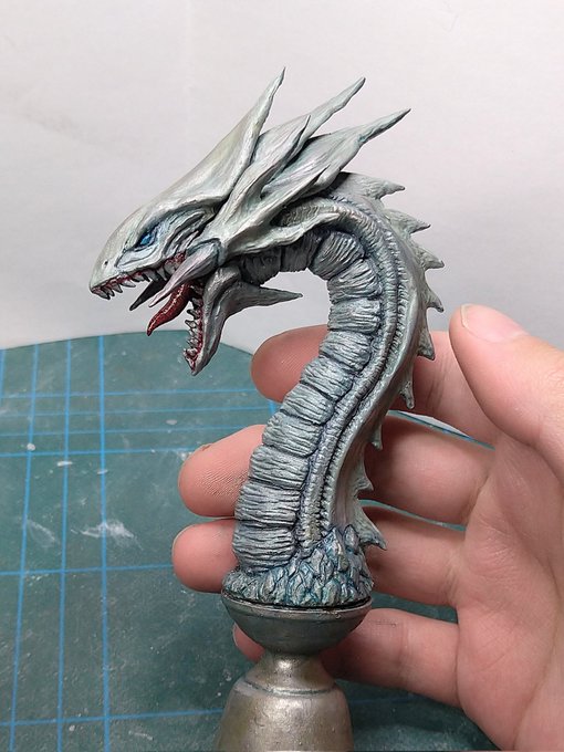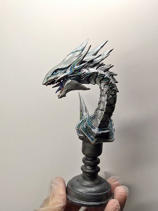 「青眼の亜白龍」の胸像作ってみました!! 青いラインはブラックライトで光ります! シャープでカッコいい感じが少しでも出せてたら嬉しいです #遊戯王 twitter.com/i/web/status/1…