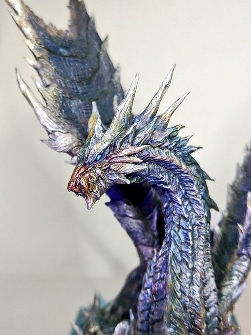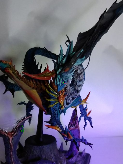 電の反逆者「電竜ライゼクス」完成しました!! ブラックライトで青電主みたいになるよう塗ってみました! 粗い部分は多いけどカッコよくできたと思います! #モンハン #自作フィギュア twitter.com/i/web/status/1…