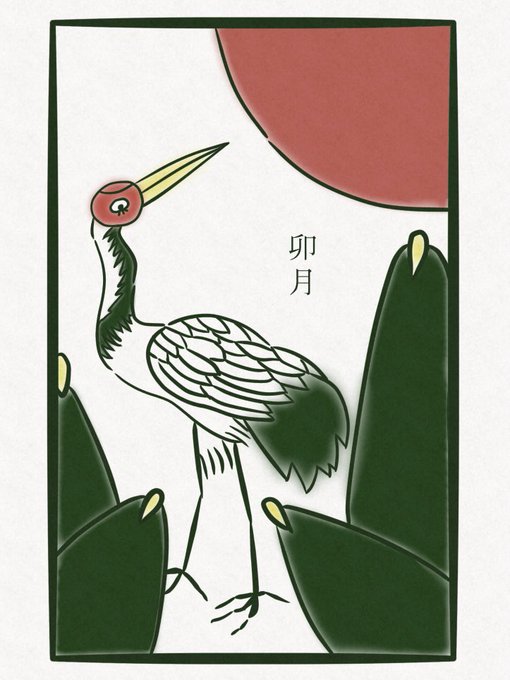 「あのよろし」花札 赤短 2月、如月、February 梅に鶯ではなく赤短、描いてみました✌︎ #ゆるイラスト #オリジナルイラスト #2月も仲良くしてくれる人いいね #2月1日 #イラスト好きな人と繋がりたい #絵描きさんと繋がりたい #冬の創作クラスタフォロー祭り