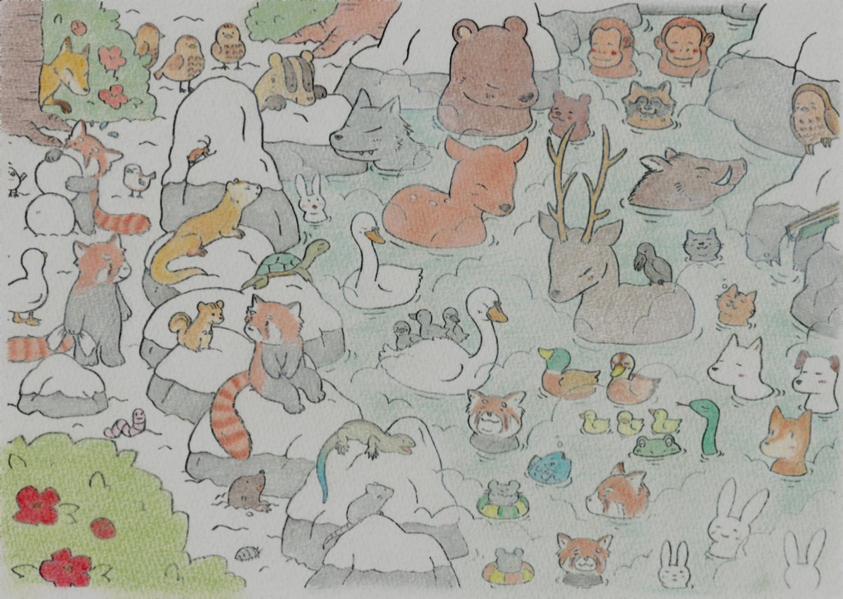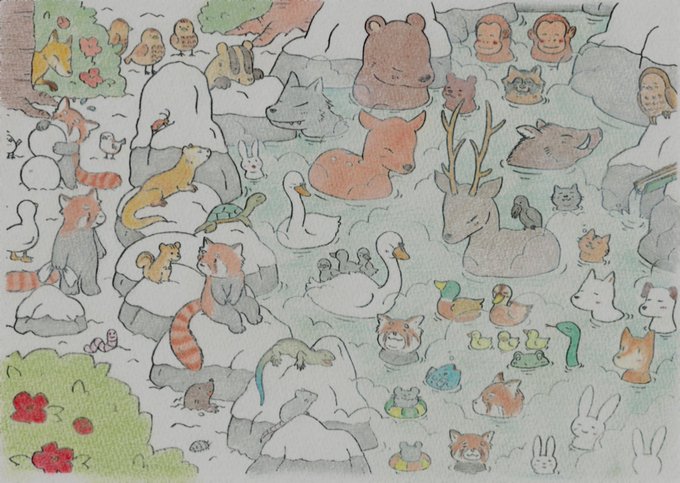 6 76 #過去絵 #イラスト好きな人と繋がりたい #動物 昔描いた温泉の絵です♨️ 22/01/28 23:08