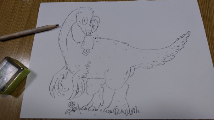 #お絵描き好きな人と繋がりたい #恐竜 テリジノサウルス描きましたo(^▽^)o 色塗りは…また今度😜