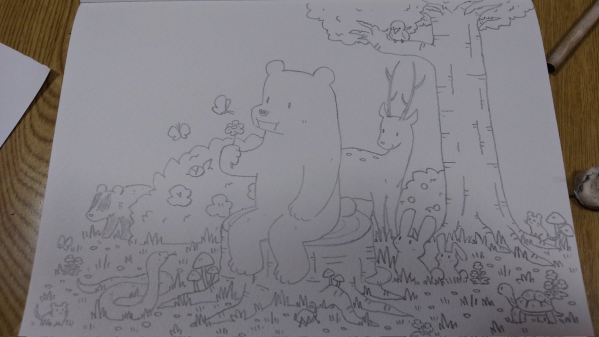 #イラスト好きさんと繋がりたい #絵描きさんと繋がたい 久しぶりに描きました🐻 色塗りは、またいつか笑
