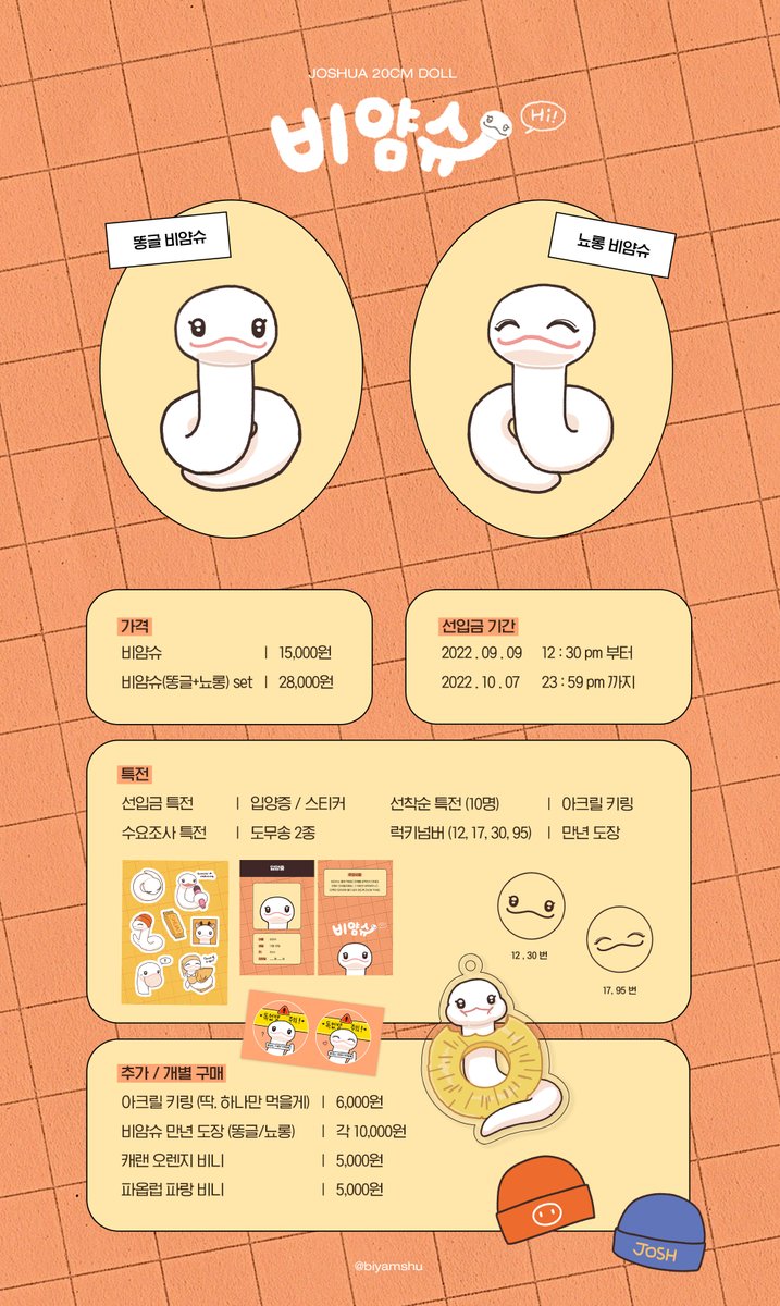 🧡🤍비얌슈 선입금🤍🧡 세븐틴 조슈아 20cm 인형 🗓️ 9.9(금) 12:30pm ~ 10.7(토) 23:59pm RT + Follow 추첨을 통해 비얌슈 한마리를 보내드립니다. ♡ 선입금 폼 witchform.com/deposit_form/2… ♡ 특전 개별구매 폼 witchform.com/deposit_form/2… 자세한 사항은 폼에서 확인해주세요!