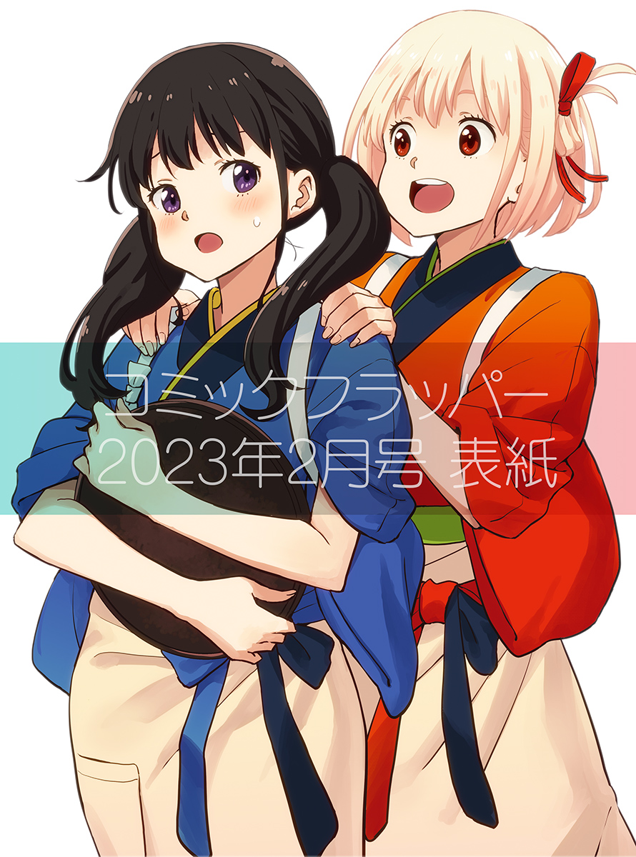 📚雑誌情報📚 ☕️リコリス・リコイル🍡 コミカライズ版 第5⃣話 掲載 『コミックフラッパー 2023年2⃣月号』 🐿️本日発売🐿️ ✅#リコリコ 表紙&巻頭カラー🎊 ✅付録は【コミックス第1巻の掛け替えカバー】です🎊