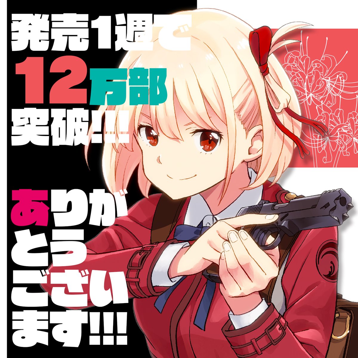 2巻の発売と共に、コミックスの累計部数が28万部を突破致しました🎊🎉🎉 本当にありがとうございます🙇 #リコリコ