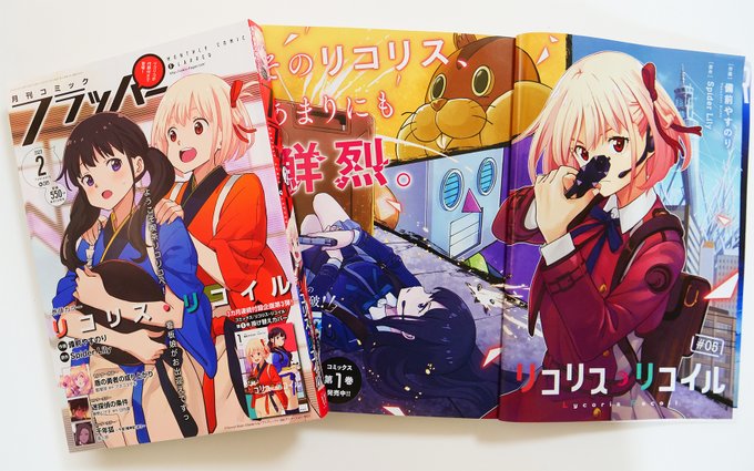 126 663 コミックス第1巻をご購入頂いた皆様、ありがとうございます🙏😭 次回の【リコリス・リコイル】コミカライズ版 第5⃣話 が掲載される「コミックフラッパー2023年2⃣月号」は、お正月明けの1⃣月5⃣日発売✨ 2⃣月号は… 🟥雑誌表紙 🟥巻頭カラー 🟥付録(掛け替えカバー) も担当させて頂きます🌟 #リコリコ 22/12/26 22:10