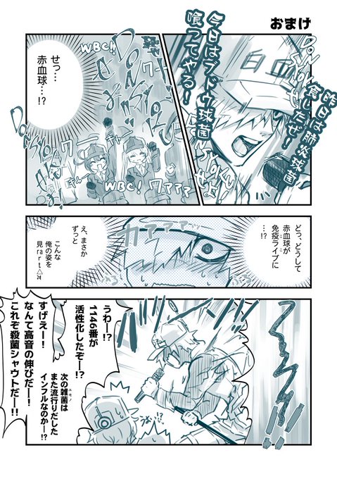 熱中症回面白かった!満足しました! 漫画はかっこいい白血球さんが描きたいのに自分で描くと色々残念な事に……な感じですすみません。