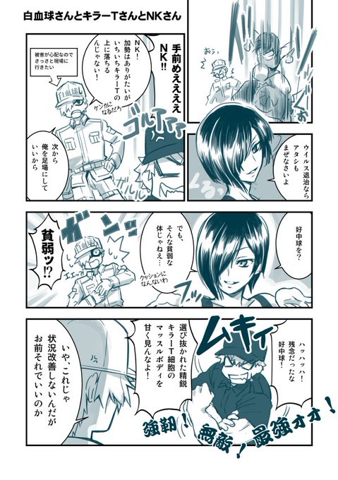 233 991 白赤漫画。キラーさんにはキツいNKさんが白血球さんには意外と優しかったり、みたいな不思議なとこが好き。 #白赤 18/09/14 21:27