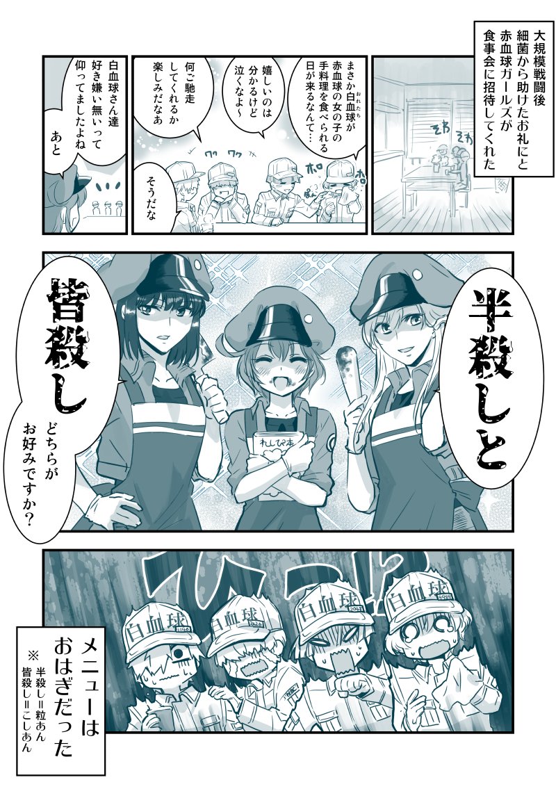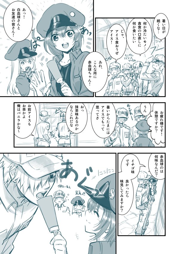 白赤漫画。キラーさんにはキツいNKさんが白血球さんには意外と優しかったり、みたいな不思議なとこが好き。 #白赤