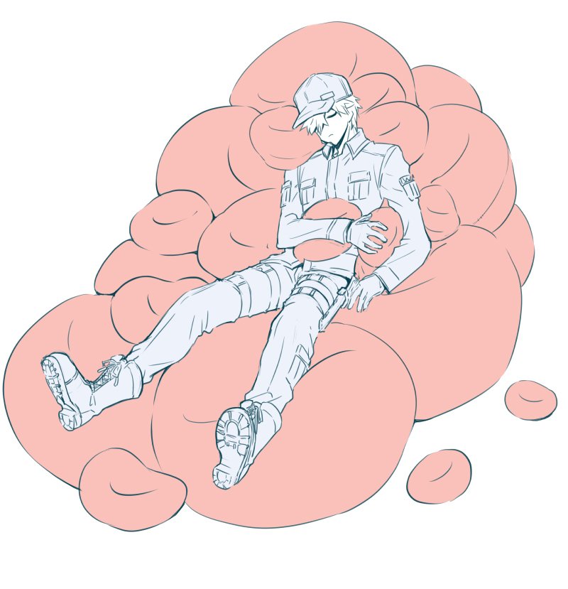 赤血9をダメにするソファ 人をダメにするソファ欲しいなーと思ったら浮かんだので描きました。 白血9さんverもあるけど漫画と合わせたいのでちょっと遅くなります。