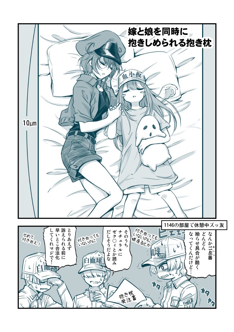 血球家族→嫁&娘抱き枕とかどうだろう、と思って絵だけのつもりだったのが、なんか降ってきたので漫画に。 白血9さんが出て来ない上変態紳士ですみません。