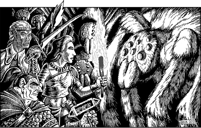 Pimping for a friend and ex-client! Dark Wizard Games does awesome OSR and 5E content! And how much more old-school can u get than a party of adventurers about to get Spider-Munched? darkwizardgames.com/?fbclid=IwAR0A… #dndart #dnd5e #gaming #GamingNews #ttrpg #TTRPGs #dungeonsanddragons