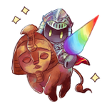 お題は「アナタが考える異色肌のツノ人外」+「“虹”から連想する人外」+「スフィンクス」 Rainbow Rider🌈🌈🌈 #人外版深夜の真剣お絵描き60分一本勝負