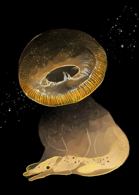 5 23 クラゲねこ(?) 「アナタが考える海棲肉食人外」 「“黄色”から連想する人外」 #人外版深夜の真剣お絵描き60分一本勝負 21/08/07 00:29