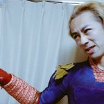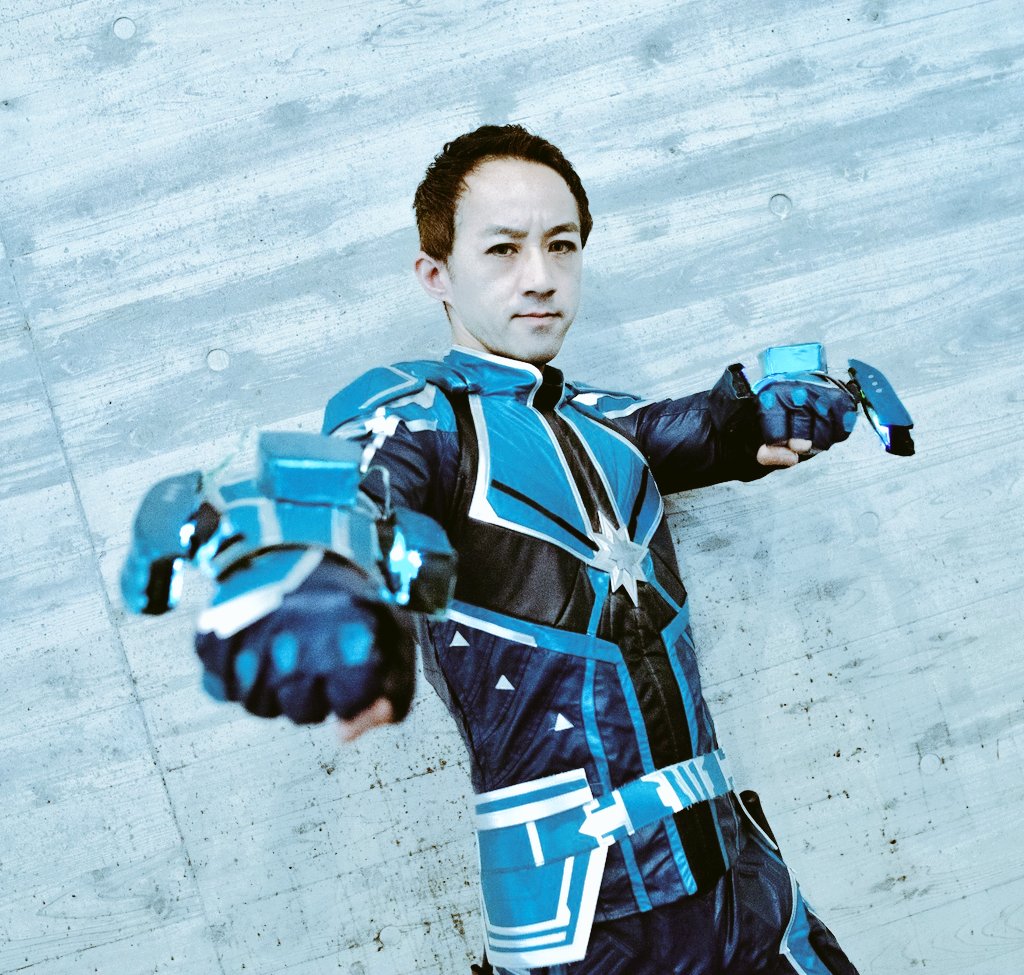 #自分がオンリーワンだと思うコスプレ晒せ キャロルのスターフォーススーツをヨンロッグ用にパーツ付け足して両腕を光らせるギミックやったのはオンリーワンかも(笑)本物にも会えたし✨一応目も金色なんですよ😂