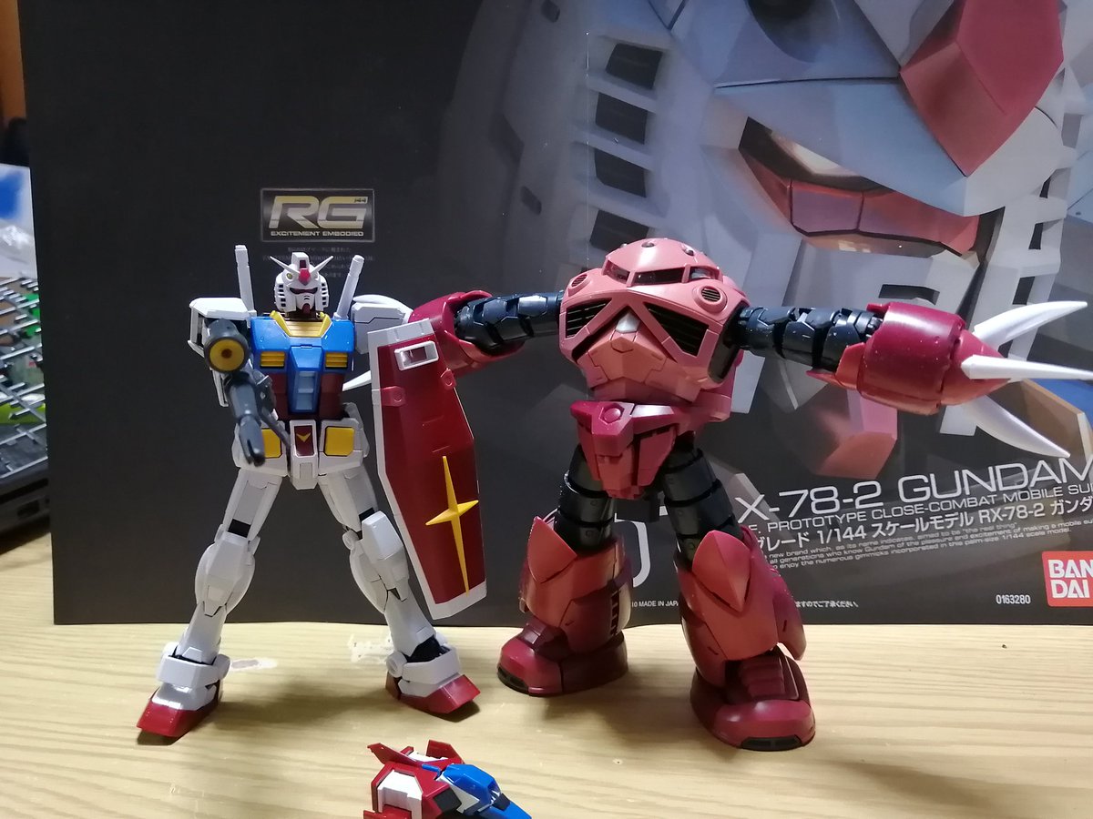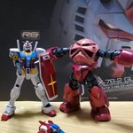 ガンダム出来た! 関節ゆるい^^; 接着しようかな ズゴックを添えて #ガンプラ #ガンプラ好きと繋がりたい #ガンプラはどんな自由な発想で作ってもいいんだ #ガンプラの画像貼るとRTされると聞いて #ガンプラは自由だ