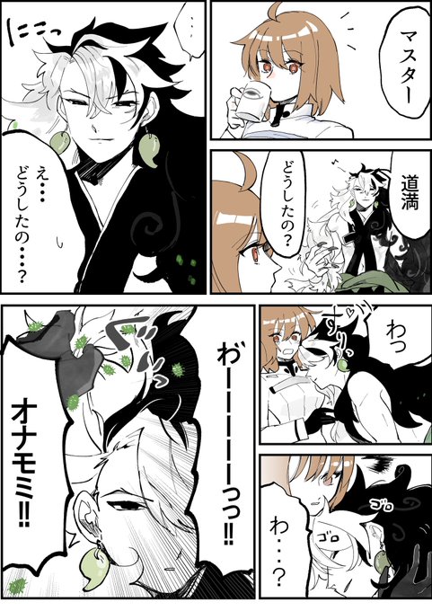 いっぱい付けてきたよ〜って報告しにきた道満の落書き(道ぐだ/リンぐだ)
