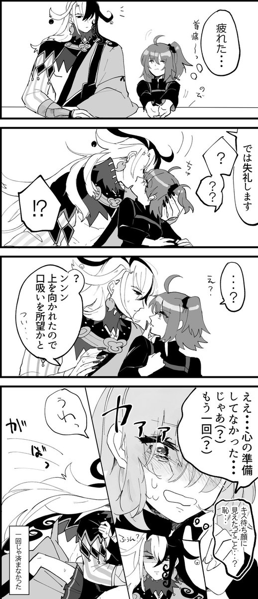 キスの日間に合った落書き(道ぐだ/リンぐだ) つい…でお気軽に口吸いしてくる道満と墓穴掘るぐだちゃん