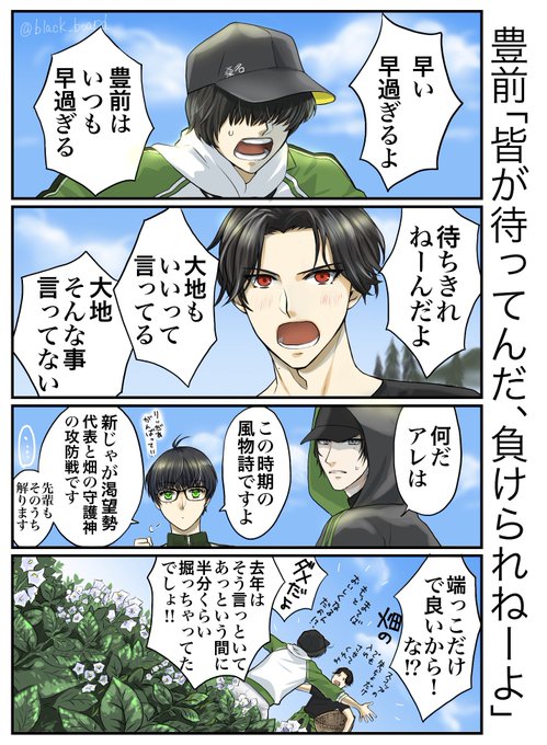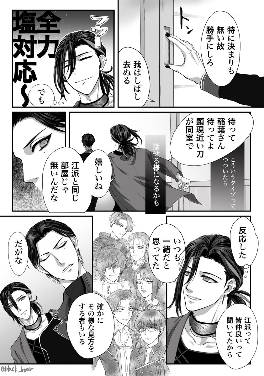 稲さんの爪を塗り忘れてました(懺悔) 稲さんと笹やんの漫画を描いてるので完成画はありませんが雲さんまでの江メンバーを揃えて描いたのはお気に入りになりそうです(ベタで潰れる可能性高いですがこてくんの眉毛も片方忘れてます…… #今月描いた絵を晒そう