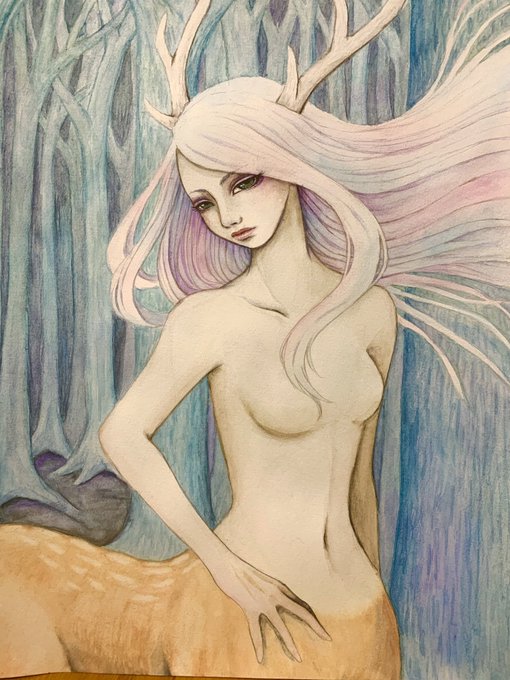 #水彩画 #イラスト #人外 前に描いた水彩画