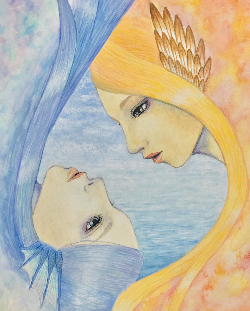 #水彩画 #イラスト #妖精 前に描いた水彩画 うーん、今見ると未熟w