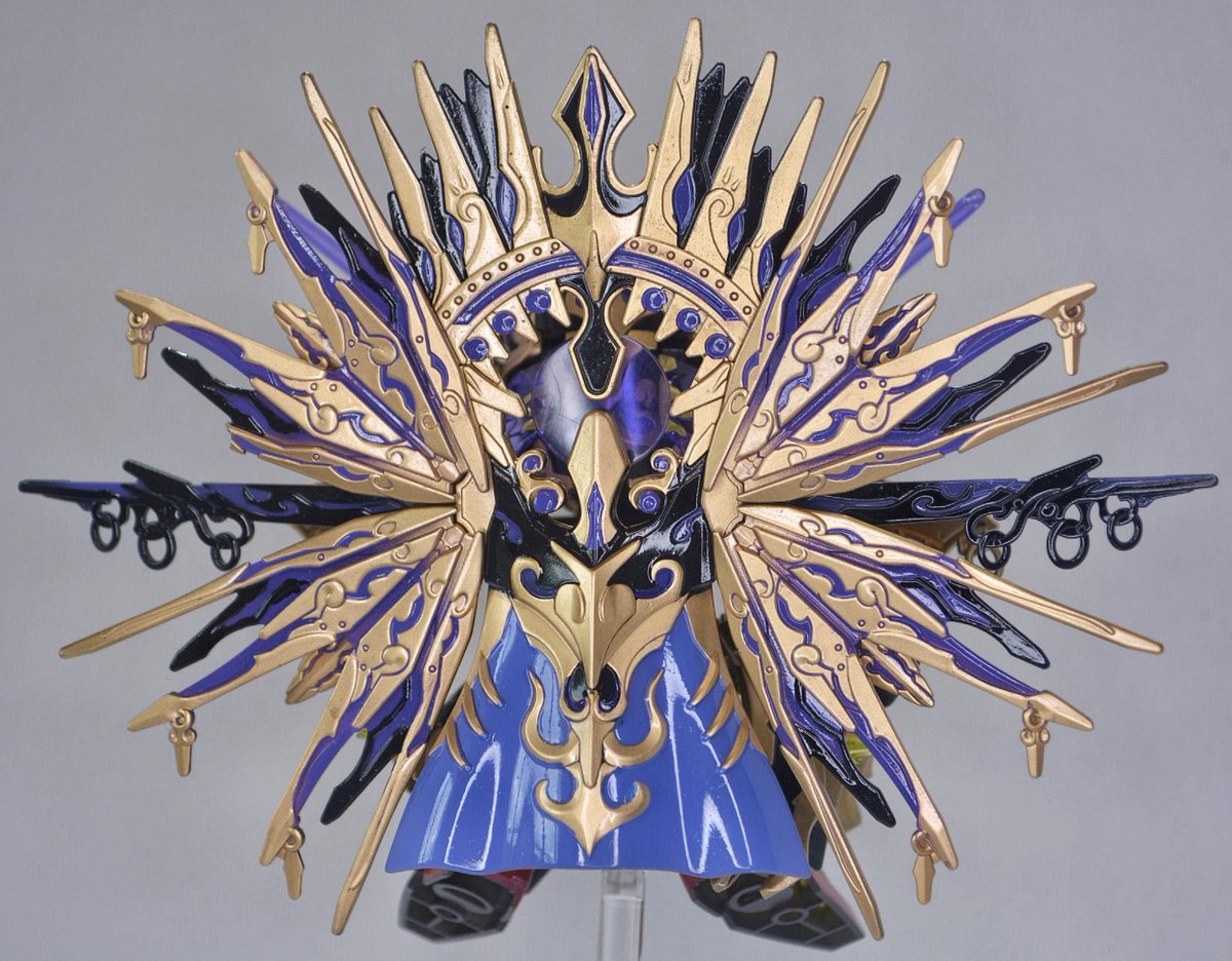 ベギルベウ 完成 パパっと作るつもりが、メタリック塗装にパール塗装まで…… クリアパーツ部分はマジョーラで、ベイオネットは綺麗な色だったので成型色のままにしました。 #水星の魔女 #ガンダム #ガンプラ #ガンダムベース #ガンプラ好きと繋がりたい #ガンプラの画像貼るとRTされると聞いて