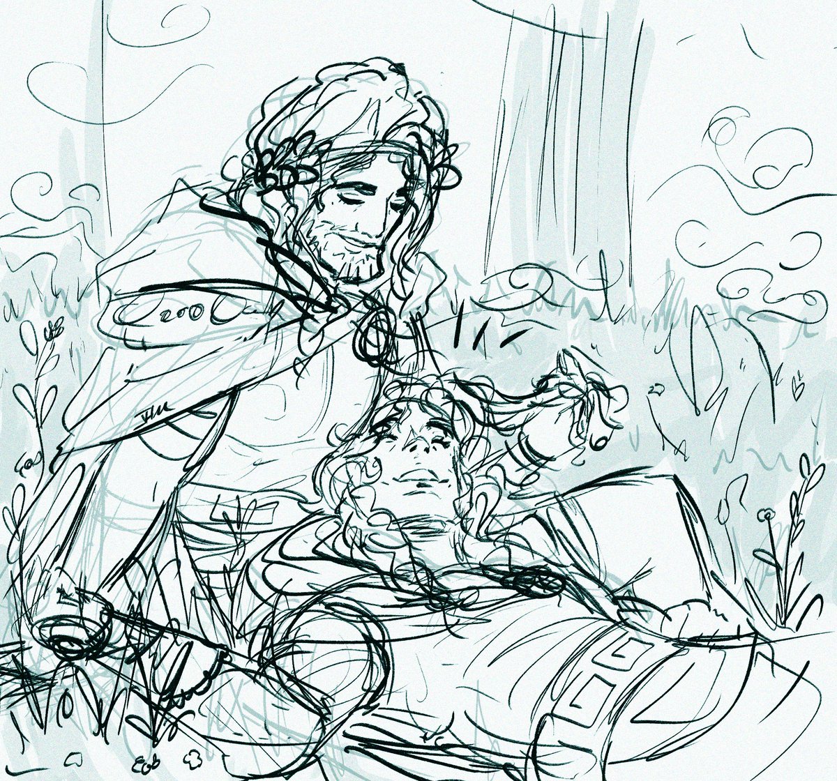 End of semester has me a bit burned out so I've only got energy for messy patrochilles sketches #HadesGame