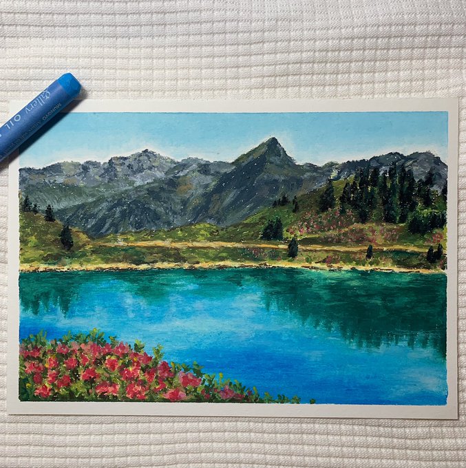 เสร็จแล้วคั้บ ลุ้นมากก ✨🦕🏔🌊 #oilpastel