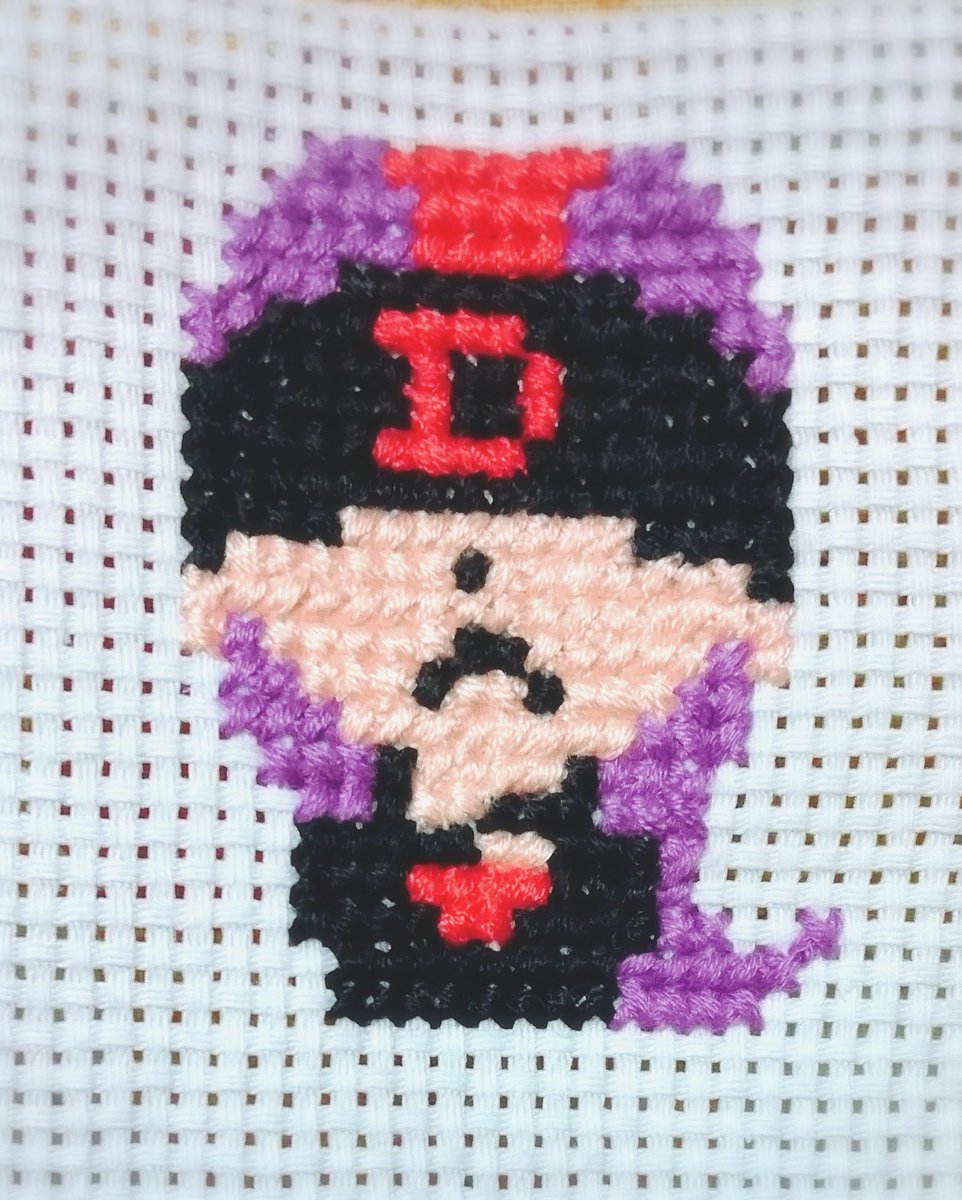 7 17 popn music14、デスロック/レトロスペクト路を担当するDくんのクロスステッチを作りました! 誤字があったのであげ直しです。 18/12/16 00:52