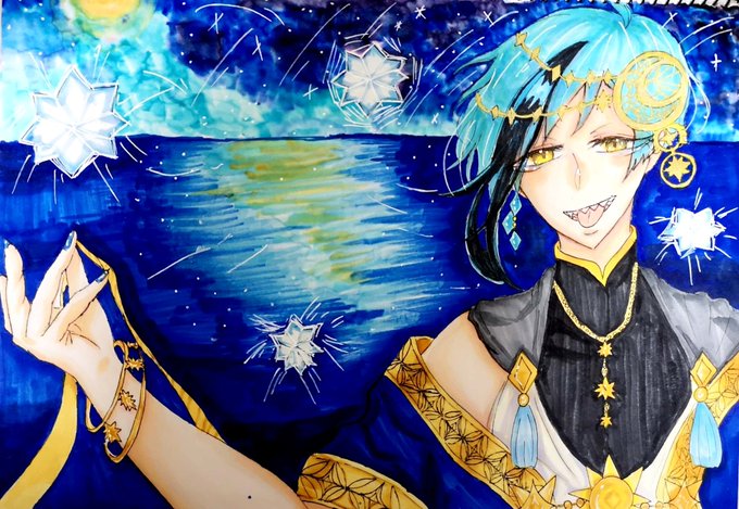 大大大遅刻の星願イベのフロイドくん🦈✨🌟💫 星空よりそれを移した海の方がフロイド似合ってるし絶対選びそう👏✨✨ #ツイステファンアート #星に願いを #フロイドくんの鎖骨で水飲みたいtwst絵描きさんと繋がりたい