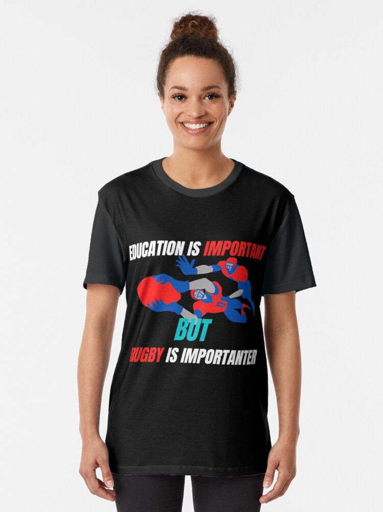 2022 Education is Important But Rugby is Importanter T-shirt Design #EducationisImportantButRugbyisImportanter #artvsartist #blackvintagestore Now You Can Buy, Follow This Link Here redbubble.com/i/t-shirt/Educ…