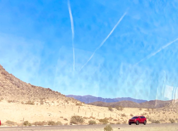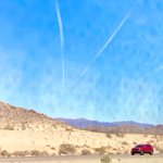 モハーヴェ砂漠その2 空港が近いからか飛行機雲がとにかく多い。飛び立って縦に伸びてるのがほとんど。1枚目の写真はあまりに素晴らしすぎて、個人的にはアイスとマーヴ(スラとグスを添えて)でこういう飛び方して欲しいなって思った1枚。