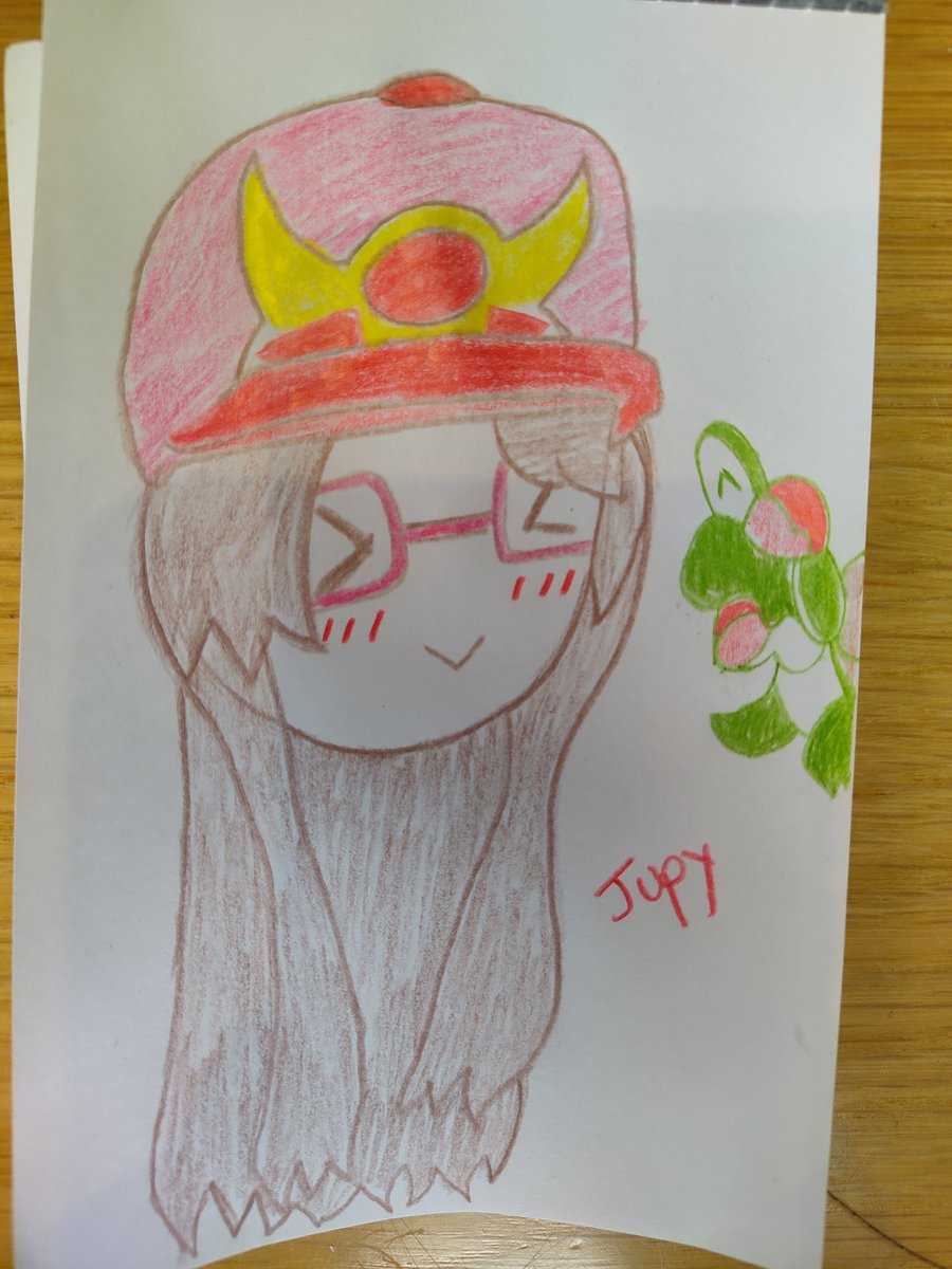 Drew this fan art of @jupy314 I dunno if she'll like it but I hope so. I hope next year I can buy her Pokemon persona plush. I don't have the fund right now but hopefully I can get one ;∆; #art #fanart #color #coloredpencil #traditional I hope the colors aren't too off ;_;