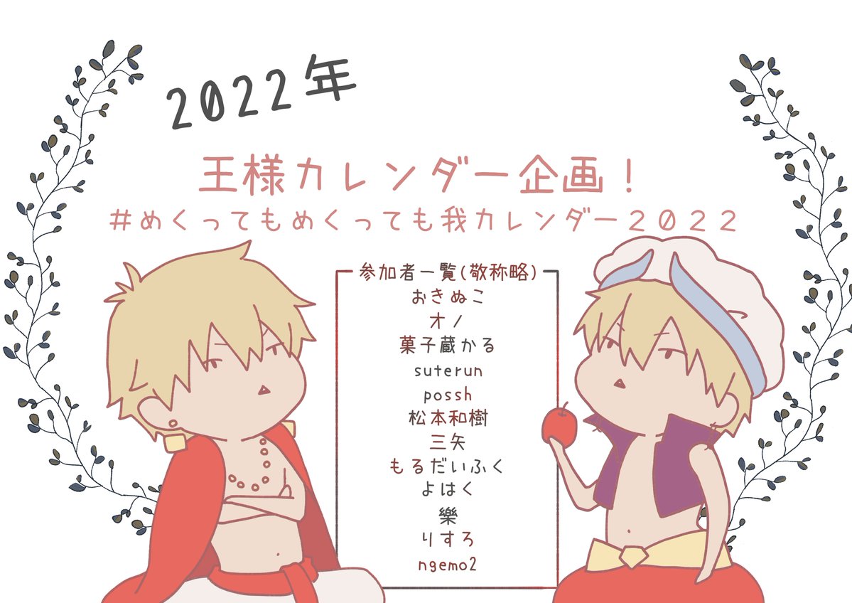 2022年1月から、1か月ごとに1枚ネップリカレンダー企画が始動いたします! 「#めくってもめくっても我カレンダー2022」を付けて毎月担当絵師様が投稿されます! 誰がどの月かは、その時までのお楽しみ。 参加してくださった絵師様は画像を参照してくださいませ~