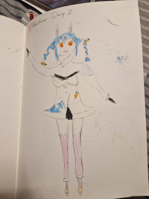 Day 3 Ballerina. Oil pastels started to smudge when making this so apologies. But started doing full length drawings as the half style couldn't quite cut it any more. Had fun making this peko. #holotober #ぺこらーと