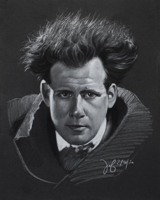 2. Sergei Eisenstein ( pastel B/N, 24 x 30cm) #drawtober ca.wikipedia.org/wiki/Serguei_E… #SergeiEisenstein