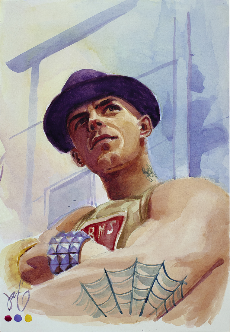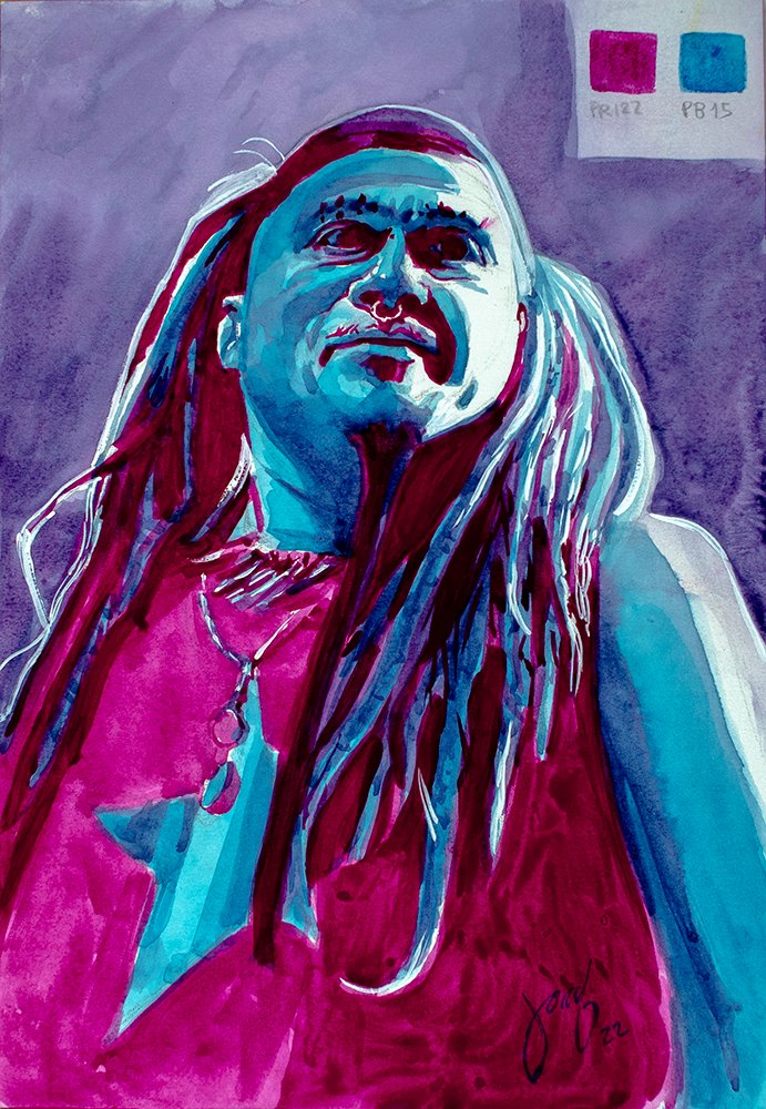 #85 Aquarel·la amb paleta limitada a tres colors: Magenta, groc i blau. Tim Armstrong, dels Rancid. #Rancid #TimArmstrong #LimitedPalette #Watercolor #WatercolorPortrait #PunkRock #SkaPunk #PortraitPainting #retrat #aquarella