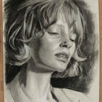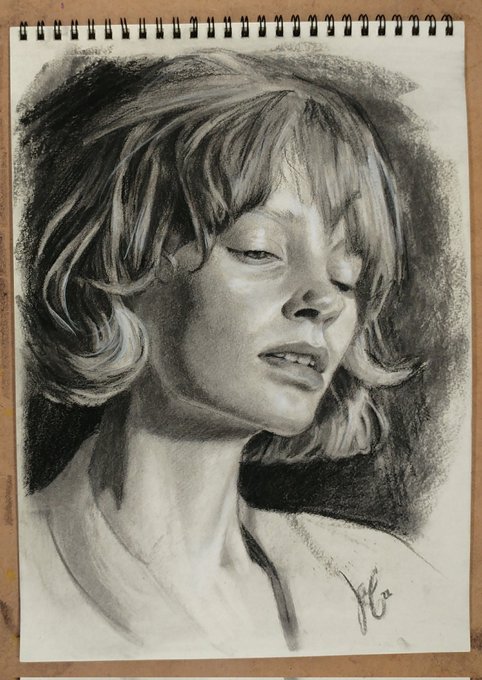 #86 #87 M'ha agradat tant aquesta cara, sobretot per l'angle, que no he pogut resistir-me a fer-ne dues versions. Carbonet i Tècnica mixta (aquarel·la, tinta i toc de llàpis de color). #PortraitDrawing #Charcoal #Watercolor #watercolorpainting