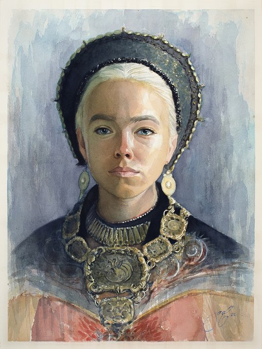 #90 Rhaenyra Targaryen (Milly Alcock), de la sèrie #HouseOfTheDragonHBO Aquarel·la, 36 x 48 cm. #houseofthedragon #HouseoftheDragonep2 #LaCasadelDragon #RHAENYRA #MillyAlcock #watercolorportrait #HouseoftheDragon