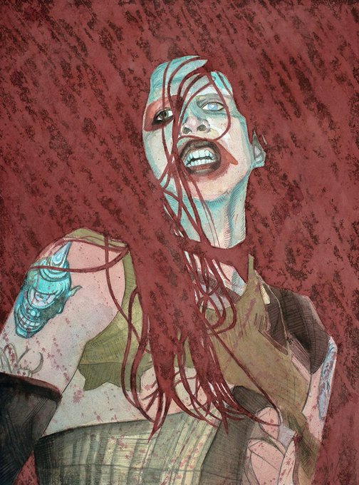 #99 Tècnica mixta. Marilyn Manson. #MarilynManson #Watercolor #Watercolorportrait #retrat #portraitart