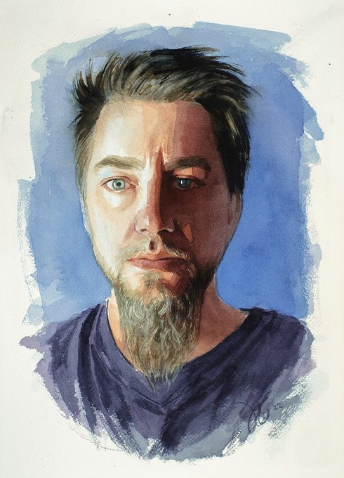#89 Aquarel·la. JS Clayden dels Pitchshifter, banda de metall alternatiu-electrònic/industrial per mi molt infravalorada a reivindicar. #JSClayden #Pitchshifter #metal #retrat #watercolor #watercolorportrait