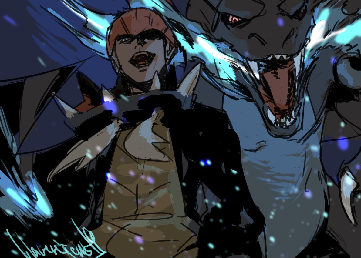 他学部所属なのでうちのキバカブは『キバカブ(不穏)』となりますこれこのように ダンデ挟んで互いに向かい合っている感じなのかな🤔