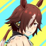 セイちゃん誕生日おめでとう! 再掲!この垢作って1番最初に投稿したのはこのスマホで描いたセイちゃんでした 彼女のこのマインドが好きです #セイウンスカイ生誕祭2023 #セイウンスカイ #ウマ娘
