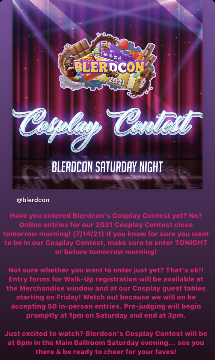 Important Announcement for those who want to be in Blerdcon’s Cosplay Contest: online applications close TOMORROW (7/14) MORNING!! blerdcon.com/highlights/cos… #Blerdcon #Cosplay