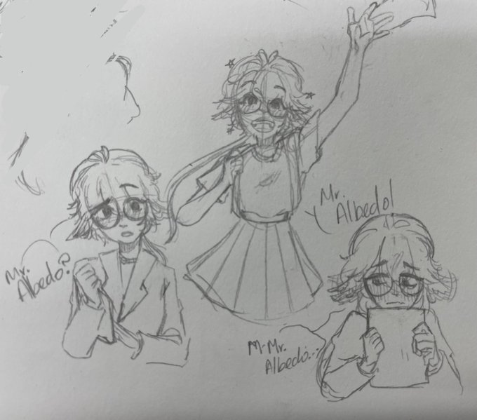 #alberose but it’s childhood friends au #Albedo #albedofanart #Sucrose #sucrosefanart hc: they called eachother mister and miss to feel important, eventually Albedo grew out of it, Sucrose didn’t