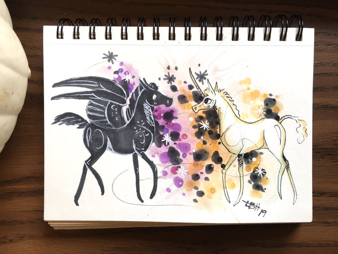 10/30 Opposites. If you could be on land or sky, which one would you pick? #inktoberday10 #inktober #inktober2019 #ArtistOnTwitter #unicorn #FridayFeeling I would be a unicorn. Mostly because I have a fear of heights xD