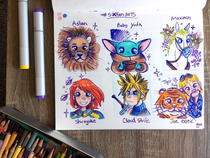 Finished the #sixfanarts ❤️ thanks for all who made the suggestions! It was hard to choose from so many good characters! Recognize any of the characters?? 😊💖 #TogetherAtHome #SaturdayMotivation #artistsontwitter