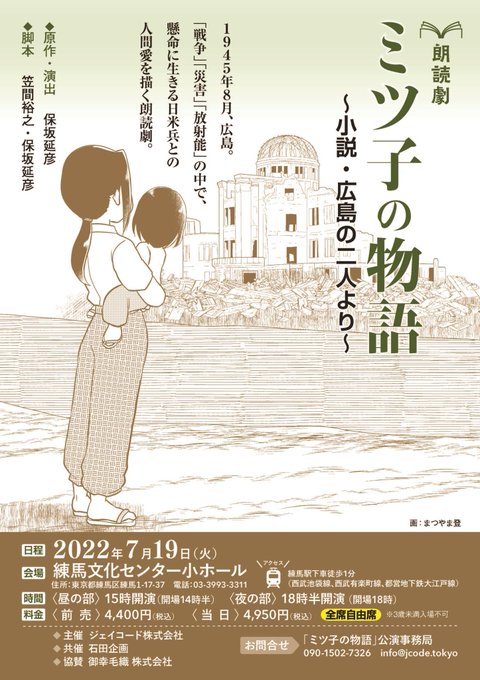 ■宣伝■ 漫画を描かせていただいた 「ミツ子の物語 ~小説・広島の二人~」の 朗読劇情報です。 2022年7月19 日(火) 練馬文化センター 昼の部 夜の部の二部制 配信ページはこちら↓ stage.corich.jp/stage_main/128… チケットはe+にて販売中です。 eplus.jp/sf/detail/3644… #ミツ子の物語