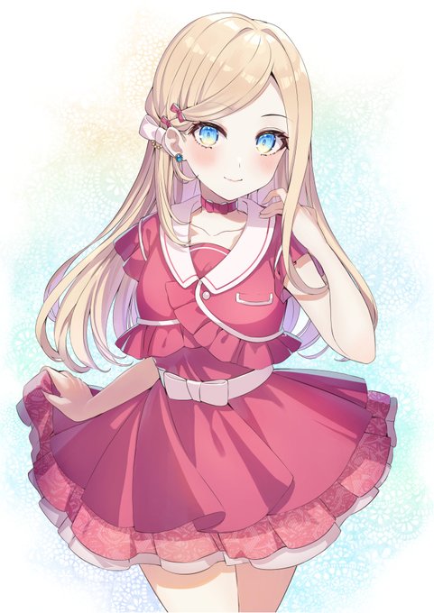 58 237 前髪を纏めるか下ろすかで死ぬ程迷った金髪ちゃん。折角何で服も今まであまり描いてこなかった赤色にしてみた。 23/06/24 20:36