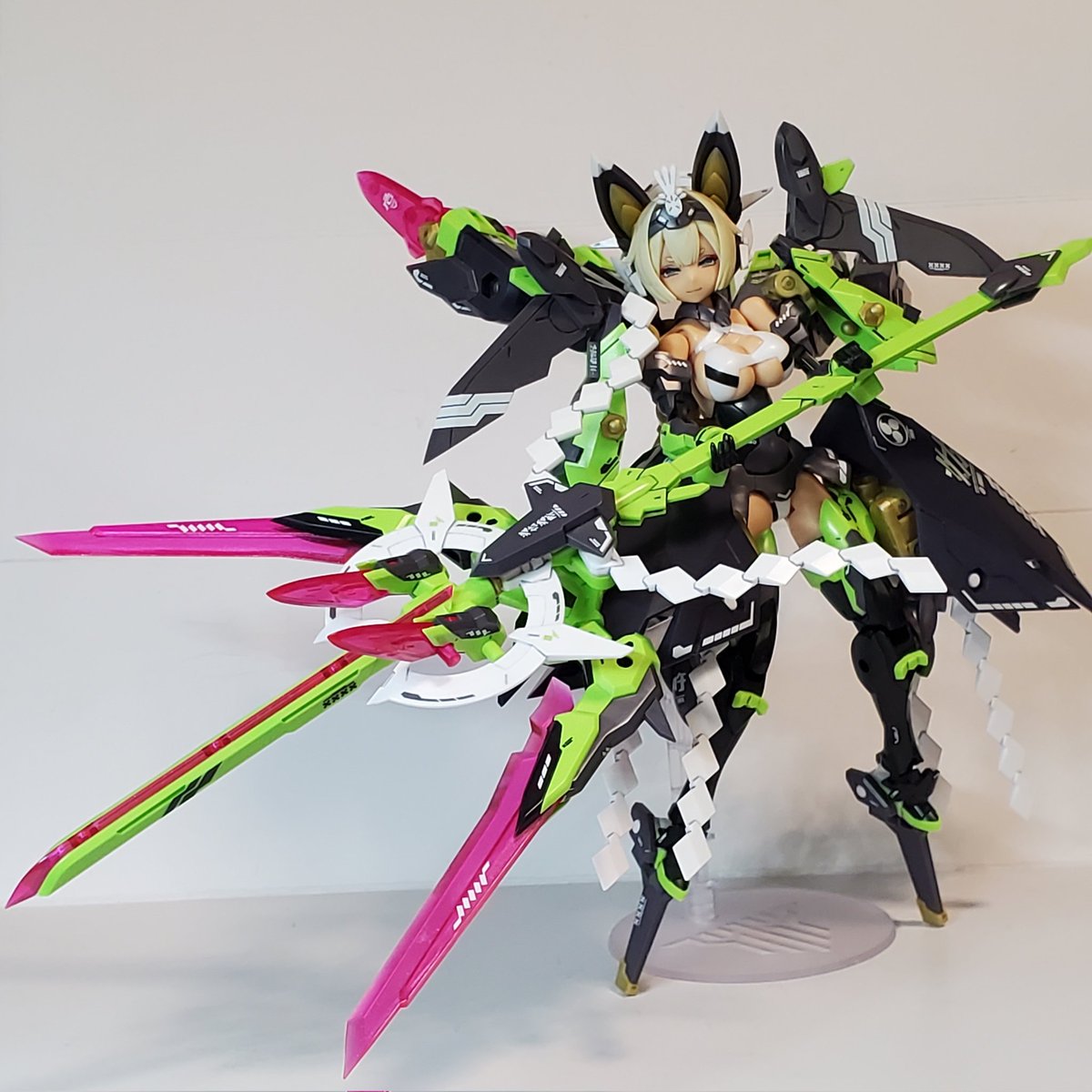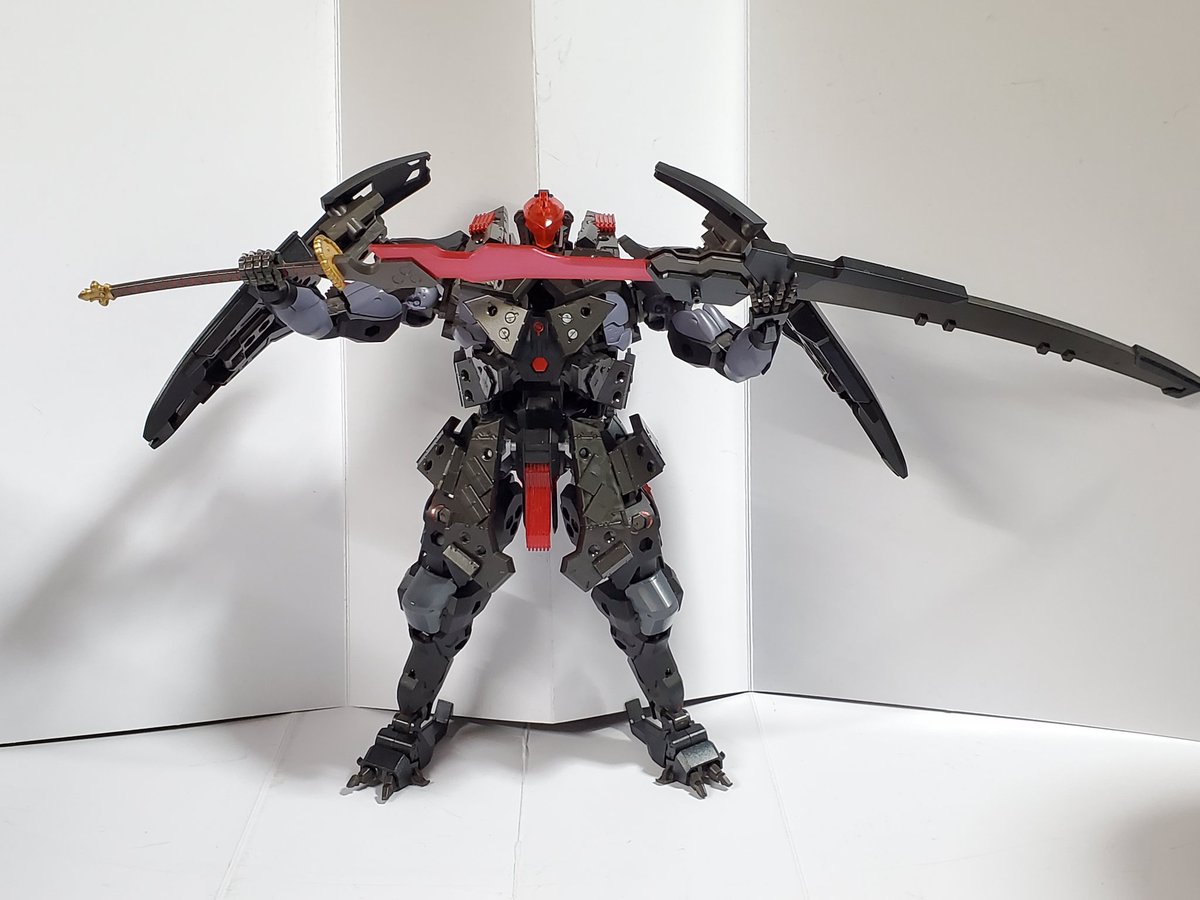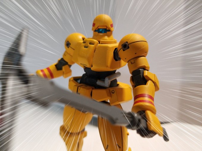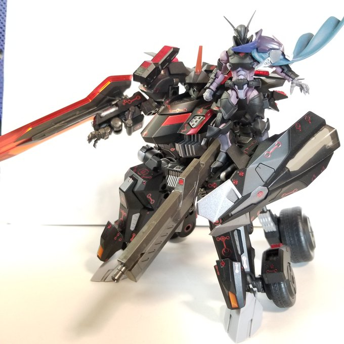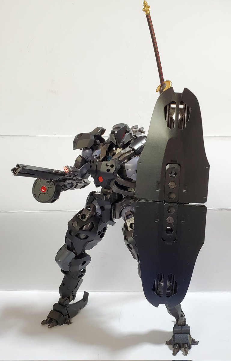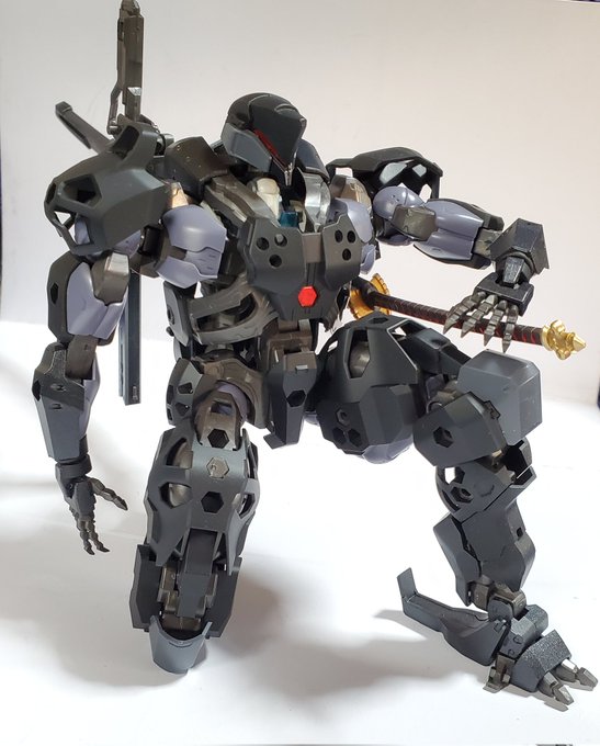 #今年作ったプラモ晒そうぜ #ヘキサギア 頭ちょっといじった以外はカラー変えただけだけど初オリジナルガバナー作った 武器ロボコンの持たせてるけどレギュ違反で投稿サイトとかにあげられないと思うしちゃんとMSGとかから作らないといけないな